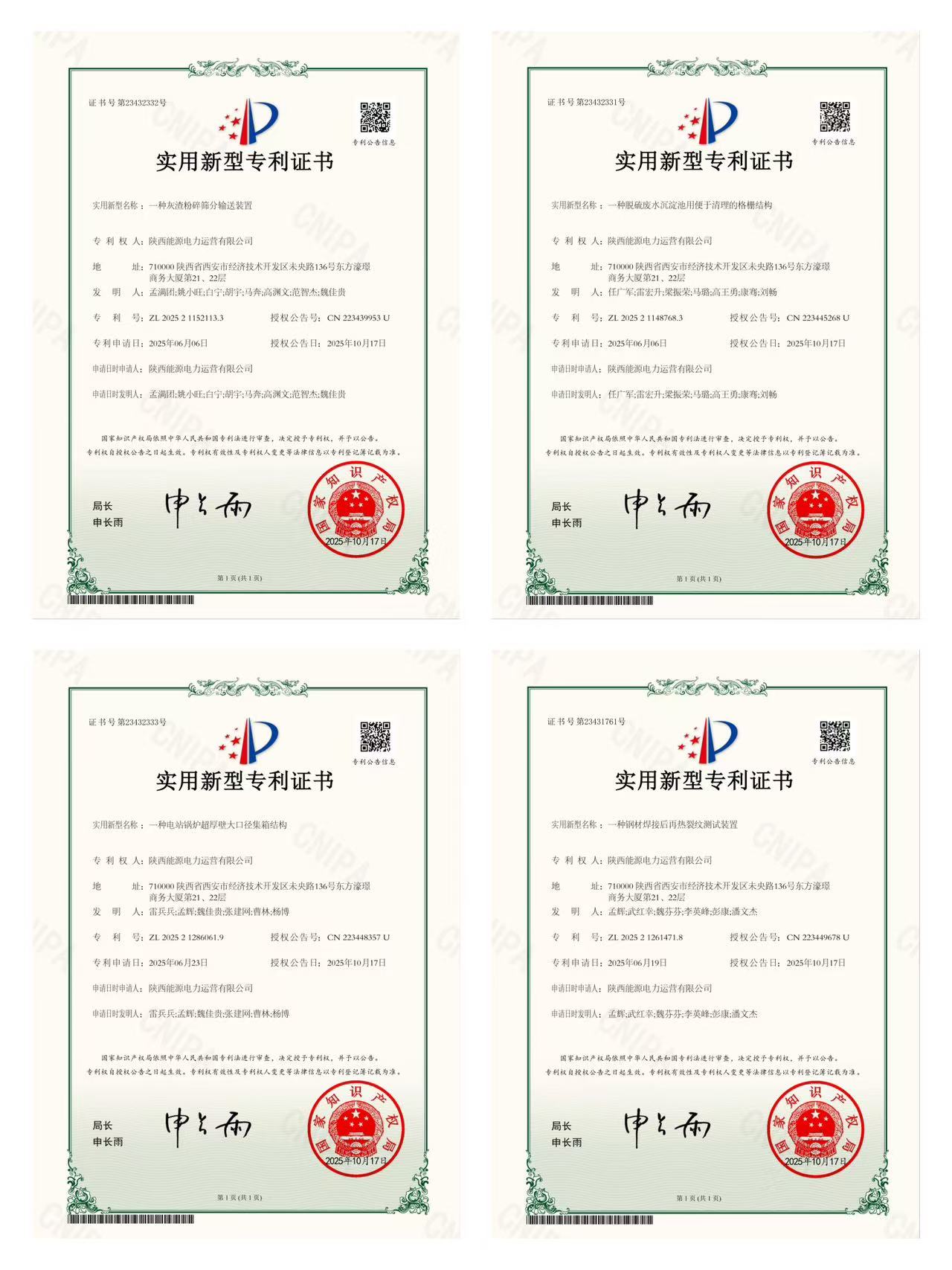 四项专利落地,不仅是公司技术创新实力的硬核彰显,更为火电维保、等级检修及新能源运维业务注入了强劲的技术动能。公司将加速专利技术的产业化应用,让创新成果切实转化为服务客户的优质能力。